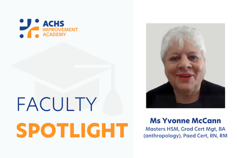 In this edition, we are pleased to feature Ms Yvonne McCann who is the facilitator for the ACHS Improvement Academy Comprehensive Care Standard 5 training. The training supports clinicians to develop a deep understanding of the requirements of Standard 5, ensuring it is linked to both the governance and partnering with consumers standard.